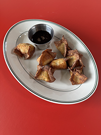 Chopped chicken / garlic cream cheese / scallion / togarashi / side of hot honey